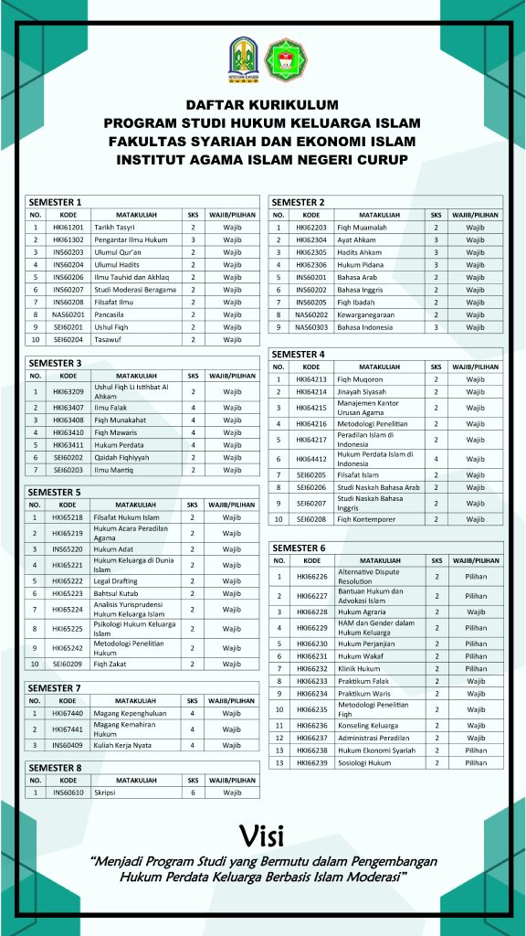 Kurikulum Dokumen kurikulum bisa diakses melalui tautan berikut ini: MBKMhttps://drive.google.com/file/d/17SPwXXyoLp-9_9sWXSdQjVt2baSjeErV/view KKNIhttps://drive.google.com/file/d/1GOrTA6DFy_yXiJ8Vzfzfgv7P_lAdZ0EK/view
